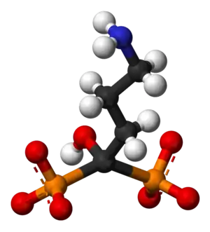 {{cite book}}: CS1 maint: location missing publisher (link) CS1 maint: multiple names: authors list (link) - ↑ Shinkai I, Ohta Y (January 1996). "New drugs--reports of new drugs recently approved by the FDA. Alendronate". Bioorg. Med. Chem. 4 (1): 3–4. doi:10.1016/0968-0896(96)00042-9. PMID 8689235.