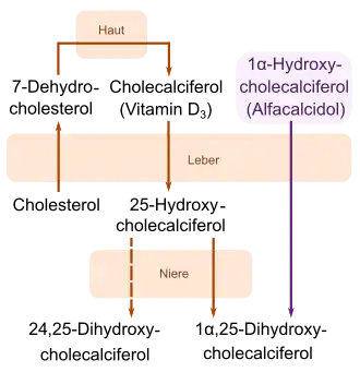 - ↑ Ritzerfeld M, Klasser M, Mann H (December 2001). "Alfacalcidol in the therapy of renal bone disease". International Journal of Clinical Pharmacology and Therapeutics. 39 (12): 546–50. doi:10.5414/cpp39546. PMID 11770836.