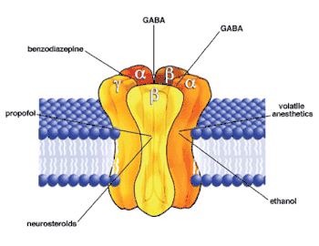 Alfaxalone is a neuroactive steroid derived from progesterone, though it has no glucocorticoid or mineralocorticoid action.[4][10] Instead, it works by acting on GABAA receptors.[20] It binds to the M3/M4 domains of the α subunit and allosterically modifies the receptor to facilitate the movement of chloride ions into the cell, resulting in hyperpolarization of the post-synaptic nerve (which inhibits actions potentials). At concentrations over 1 micromolar,[21] alfaxalone binds to a site at the interface between the α and β subunits (near the actual GABA binding site) and acts as a GABA agonist, similar to benzodiazepines.[17][22] Alfaxalone, however, does not share the benzodiazepine binding site,[23] and actually prefers different GABAA receptors than benzodiazepines do. It works best on the α1-β2-γ2-L isoform.[11] Research suggests that neuroactive steroids increase the expression of GABAA receptors, making it more difficult to build tolerance.[22]