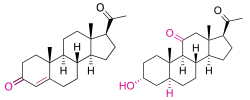 Alfaxalone, also known as 11-oxo-3α,5α-tetrahydroprogesterone, 5α-pregnan-3α-ol-11,20-dione, or 3α-hydroxy-5α-pregnane-11,20-dione, is a synthetic pregnane steroid and a derivative of progesterone.[1] It is specifically a modification of progesterone in which the C3 ketone has been reduced to a hydroxyl group, the double bond between the C4 and C5 positions has been reduced and is now a single bond, and a ketone has been substituted at the C11 position.[1] Alfaxalone is also a derivative of allopregnanolone, differing from it only by the addition of the C11 ketone.[1] Other closely related steroids include ganaxolone, hydroxydione, minaxolone, pregnanolone, and renanolone.[1]