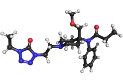 Alfentanil, sold under the brand name Alfenta among others, is a potent, short-acting synthetic opioid analgesic drug used for anesthesia in surgery. It is an analogue of fentanyl with around one-fourth to one-tenth the potency, one-third the duration of action, and an onset of action four times faster than that of fentanyl.[3] Alfentanil has a pKa of approximately 6.5, which leads to a very high proportion of the drug being uncharged at physiologic pH, a characteristic responsible for its rapid-onset. It is an agonist of the μ-opioid receptor.