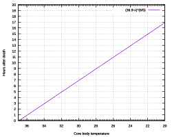 The Glaister equation[4][5] estimates the hours elapsed since death as a linear function of the rectal temperature: