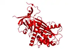 Alpha 2-antiplasmin (or α2-antiplasmin or plasmin inhibitor) is a serine protease inhibitor (serpin) responsible for inactivating plasmin.[5] Plasmin is an important enzyme that participates in fibrinolysis and degradation of various other proteins. This protein is encoded by the SERPINF2 gene.[6]