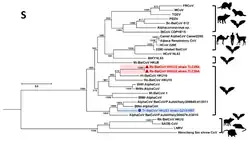 - ↑ Woo, P. C.; Wang, M.; Lau, S. K.; Xu, H.; Poon, R. W.; Guo, R.; Wong, B. H.; Gao, K.; Tsoi, H. W.; Huang, Y.; Li, K. S.; Lam, C. S.; Chan, K. H.; Zheng, B. J.; Yuen, K. Y. (2007). "Comparative analysis of twelve genomes of three novel group 2c and group 2d coronaviruses reveals unique group and subgroup features". Journal of Virology. 81 (4): 1574–85. doi:10.1128/JVI.02182-06. PMC 1797546. PMID 17121802.