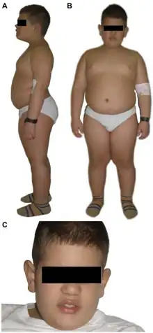 Alström syndrome (AS), also called Alström–Hallgren syndrome,[1] is a very rare autosomal recessive genetic disorder characterised by childhood obesity and multiple organ dysfunction. Symptoms include early-onset type 2 diabetes, cone-rod dystrophy resulting in blindness, sensorineural hearing loss and dilated cardiomyopathy. Endocrine disorders typically also occur, such as hypergonadotrophic hypogonadism and hypothyroidism, as well as acanthosis nigricans resulting from hyperinsulinemia. Developmental delay is seen in almost half of people with Alström syndrome.[2]