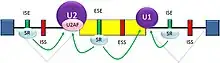 - ↑ 29.0 29.1 29.2 29.3 Wang Z, Burge CB (May 2008). "Splicing regulation: from a parts list of regulatory elements to an integrated splicing code" (Free full text). RNA. 14 (5): 802–13. doi:10.1261/rna.876308. PMC 2327353. PMID 18369186.