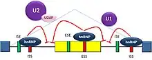- ↑ Warf MB, Berglund JA (March 2010). "Role of RNA structure in regulating pre-mRNA splicing". Trends in Biochemical Sciences. 35 (3): 169–78. doi:10.1016/j.tibs.2009.10.004. PMC 2834840. PMID 19959365.