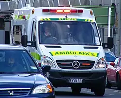 Emergency ambulances are highly likely to be involved in hazardous situations, including incidents such as a road traffic collision, as these emergencies create people who are likely to be in need of treatment. They are required to gain access to patients as quickly as possible, and in many countries, are given dispensation from obeying certain traffic laws. For instance, they may be able to treat a red traffic light or stop sign as a yield sign ('give way'),[60] or be permitted to break the speed limit.[61] Generally, the priority of the response to the call will be assigned by the dispatcher, but the priority of the return will be decided by the ambulance crew based on the severity of the patient's illness or injury. Patients in significant danger to life and limb (as determined by triage) require urgent treatment by advanced medical personnel,[62] and because of this need, emergency ambulances are often fitted with passive and active visual and/or audible warnings to alert road users.