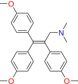 - ↑ Sandler G (May 1960). "Clinical evaluation of a new coronary vasodilator, 3-dimethylamino-1,1 2-tris (4-methoxyphenyl)-1-propene hydrochloride (WIN 5494)". American Heart Journal. 59 (5): 718–22. doi:10.1016/0002-8703(60)90512-3. PMID 14441425.
