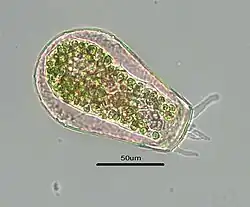 Other organisms may also present amoeboid cells during certain life-cycle stages, e.g., the gametes of some green algae (Zygnematophyceae)[71] and pennate diatoms,[72] the spores (or dispersal phases) of some Mesomycetozoea,[73][74] and the sporoplasm stage of Myxozoa and of Ascetosporea.[75]