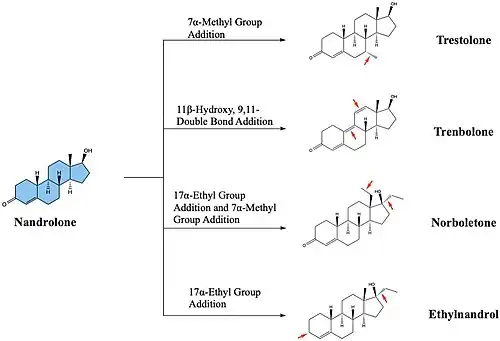 - ↑ Camerino B, Sciaky R (1 January 1975). "Structure and effects of anabolic steroids". Pharmacology & Therapeutics Part B. 1 (2): 233–275. doi:10.1016/0306-039X(75)90007-0. PMID 817322.