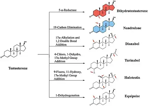 - ↑ Shahidi NT (September 2001). "A review of the chemistry, biological action, and clinical applications of anabolic-androgenic steroids". Clinical Therapeutics. 23 (9): 1355–1390. doi:10.1016/s0149-2918(01)80114-4. PMID 11589254.