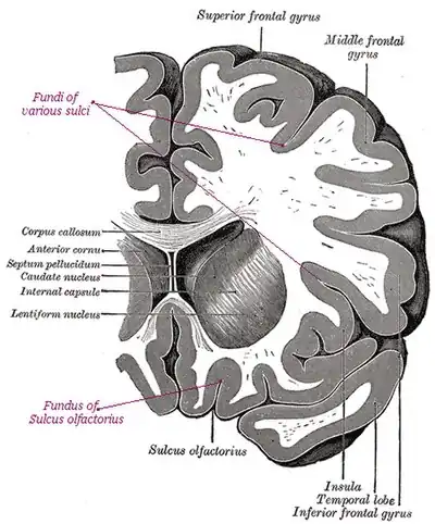 - sulcal fundus, for the bottom of a sulcus, an inward fold
