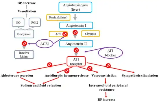 {{cite web}}: CS1 maint: multiple names: authors list (link) CS1 maint: numeric names: authors list (link) - ↑ Herman, LL; Padala, SA; Annamaraju, P; Bashir, K (January 2021). "Angiotensin Converting Enzyme Inhibitors (ACEI)". StatPearls. PMID 28613705.