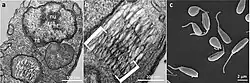 - ↑ Gadelha C, Wickstead B, de Souza W, Gull K, Cunha-e-Silva N (2005). "Cryptic paraflagellar rod in endosymbiont-containing kinetoplastid protozoa". Eukaryot Cell. 4 (3): 516–525. doi:10.1128/EC.4.3.516-525.2005. PMC 1087800. PMID 15755914.