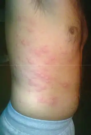 Acute allergic manifestations, such as urticaria and anaphylaxis, may occur with or without accompanying gastrointestinal symptoms. The frequency of allergic symptoms in connection with fish ingestion has led to the concept of gastroallergic anisakiasis, an acute IgE-mediated generalized reaction.[16] Occupational allergy, including asthma, conjunctivitis, and contact dermatitis, has been observed in fish processing workers.[22] Sensitivization and allergy are determined by skin-prick test and detection of specific antibodies against Anisakis. Hypersensitivity is indicated by a rapid rise in levels of IgE in the first several days following consumption of infected fish.[16] A 2018 review of cases in France has shown that allergic cases were more commonly found, although the number of human Anisakis infections was decreasing.[23]