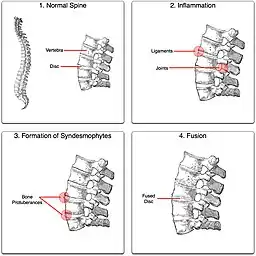 - ↑ Haroon N (June 2015). "Ankylosis in ankylosing spondylitis: current concepts". Clinical Rheumatology. 34 (6): 1003–7. doi:10.1007/s10067-015-2956-4. PMID 25935456. S2CID 25930196.