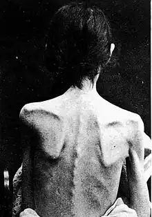 Some individuals may also have a decrease in cardiac contractility. Cardiac complications can be life-threatening, but the heart muscle generally improves with weight gain, and the heart normalizes in size over weeks to months, with recovery.[55] Atrophy of the heart muscle is a marker of the severity of the disease, and while it is reversible with treatment and refeeding, it is possible that it may cause permanent, microscopic changes to the heart muscle that increase the risk of sudden cardiac death.[54] Individuals with anorexia nervosa may experience chest pain or palpitations; these can be a result of mitral valve prolapse. Mitral valve prolapse occurs because the size of the heart muscle decreases while the tissue of the mitral valve remains the same size. Studies have shown rates of mitral valve prolapse of around 20 percent in those with anorexia nervosa, while the rate in the general population is estimated at 2–4 percent.[56] It has been suggested that there is an association between mitral valve prolapse and sudden cardiac death, but it has not been proven to be causative, either in patients with anorexia nervosa or in the general population.[54]