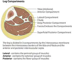Cross-section through middle of leg. Anterior compartment is shown right to the tibia.