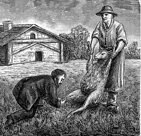 Anthrax can be contracted in laboratory accidents or by handling infected animals, their wool, or their hides.[38]