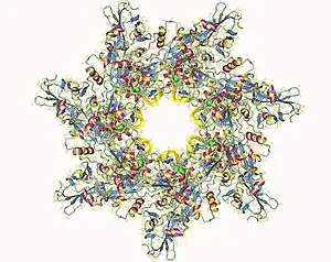 Anthrax toxin protective antigen (fragment) heptamer, Bacillus anthracis.