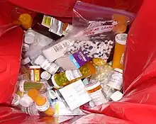 Unused pharmaceuticals collected as part of a university research project into pharmaceuticals waste.