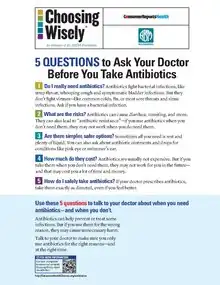 Health advocacy messages such as this one encourage patients to talk with their doctor about safety in using antibiotics.