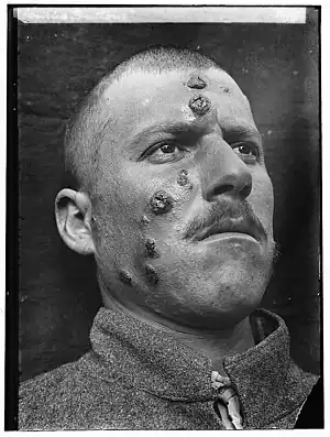 A 1917 case of cutaneous leishmaniasis in the Middle East, known then locally as "Jericho buttons" for the frequency of cases near the ancient city of Jericho