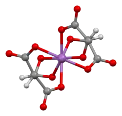 Ball-and-stick model of the bis(μ2-tartrato)-di-antimony anion,[1][2] [Sb2(C4H2O6)2]2
