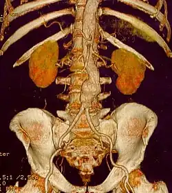 - ↑ Vu KN, Kaitoukov Y, Morin-Roy F, Kauffmann C, Giroux MF, Thérasse E, et al. (June 2014). "Rupture signs on computed tomography, treatment, and outcome of abdominal aortic aneurysms". Insights into Imaging. 5 (3): 281–293. doi:10.1007/s13244-014-0327-3. PMC 4035490. PMID 24789068.