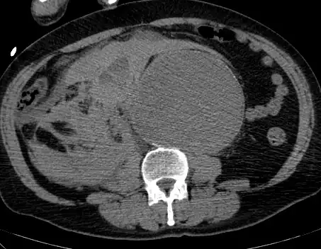 The diagnosis of an abdominal aortic aneurysm can be confirmed by the use of ultrasound. Rupture may be indicated by the presence of free fluid in the abdomen. A contrast-enhanced abdominal CT scan is the best test to diagnose an AAA and guide treatment options.[10]