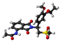 - ↑ Schafer P (June 2012). "Apremilast mechanism of action and application to psoriasis and psoriatic arthritis". Biochemical Pharmacology. 83 (12): 1583–90. doi:10.1016/j.bcp.2012.01.001. PMID 22257911.