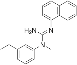 1. Reddy NL, Hu LY, Cotter RE, Fischer JB, Wong WJ, McBurney RN, et al. (January 1994). "Synthesis and structure-activity studies of N,N'-diarylguanidine derivatives. N-(1-naphthyl)-N'-(3-ethylphenyl)-N'-methylguanidine: a new, selective noncompetitive NMDA receptor antagonist". Journal of Medicinal Chemistry. 37 (2): 260–7. doi:10.1021/jm00028a009. PMID 8295213.