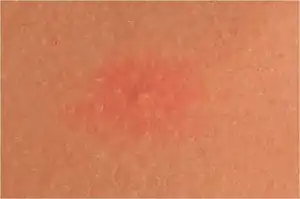| Close-up view of wheal on torso after water exposure. | |