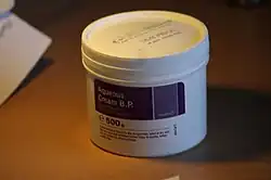 Aqueous Cream BP, also known as sorbolene, is a light, hydrocarbon-based emulsion, which is officially registered in the British Pharmacopoeia and categorised by the British National Formulary as a non-proprietary emollient preparation.[1] It is used as a topical, external medicine, emollient, and general-purpose substitute for toiletries such as soap, shower gel, shaving cream, and lip salve. While sometimes thought to be a moisturiser, it is poor as such; official advice is not to prescribe the cream as a moisturiser.[2][3]