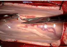 - ↑ Tachibana, Toshiya; Moriyama, Tokuhide; Maruo, Keishi; Inoue, Shinichi; Arizumi, Fumihiro; Yoshiya, Shinichi (2014). "Subarachnoid-subarachnoid bypass for spinal adhesive arachnoiditis". Journal of Neurosurgery: Spine. 21 (5): 817–820. doi:10.3171/2014.7.SPINE131082. ISSN 1547-5654. PMID 25170651.