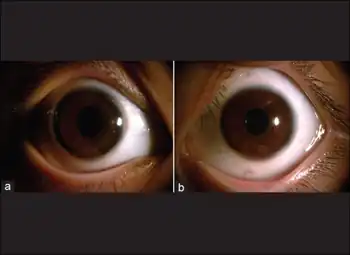 - ↑ Zech LA, Hoeg JM (March 2008). "Correlating corneal arcus with atherosclerosis in familial hypercholesterolemia". Lipids in Health and Disease. 7: 7. doi:10.1186/1476-511X-7-7. PMC 2279133. PMID 18331643.