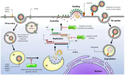 40. 40.0 40.1 Lee, A. M.; Pasquato, A.; Kunz, S. (2011). "Novel approaches in anti-arenaviral drug development". Virology. 411 (2): 163–169. doi:10.1016/j.virol.2010.11.022. PMC 3057354. PMID 21183197.