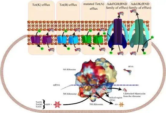 - ↑ Asadi, Arezoo; Abdi, Milad; Kouhsari, Ebrahim; Panahi, Pegah; Sholeh, Mohammad; Sadeghifard, Nourkhoda; Amiriani, Taghi; Ahmadi, Alireza; Maleki, Abbas; Gholami, Mehrdad (1 September 2020). "Minocycline, focus on mechanisms of resistance, antibacterial activity, and clinical effectiveness: Back to the future". Journal of Global Antimicrobial Resistance. 22: 161–174. doi:10.1016/j.jgar.2020.01.022. ISSN 2213-7165.