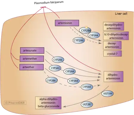 - ↑ "Artemisinin and Derivatives Pathway, Pharmacokinetics". PharmGKB. Retrieved 28 April 2024.