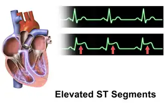 - ↑ de Bliek EC (March 2018). "ST elevation: Differential diagnosis and caveats. A comprehensive review to help distinguish ST elevation myocardial infarction from nonischemic etiologies of ST elevation". Turkish Journal of Emergency Medicine. 18 (1): 1–10. doi:10.1016/j.tjem.2018.01.008. PMC 6009807. PMID 29942875.