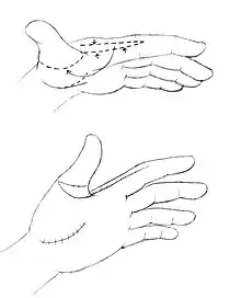 - ↑ Ezaki M, Oishi SN (March 2010). "Index rotation flap for palmar thumb release in arthrogryposis". Techniques in Hand & Upper Extremity Surgery. 14 (1): 38–40. doi:10.1097/BTH.0b013e3181d44583. PMID 20216051.