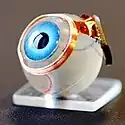 The most successful function-replacing artificial eye so far is actually an external miniature digital camera with a remote unidirectional electronic interface implanted on the retina, optic nerve, or other related locations inside the brain. The present state of the art yields only partial functionality, such as recognizing levels of brightness, swatches of color, and/or basic geometric shapes, proving the concept's potential.[23]