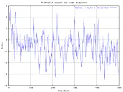 The primary structure of Escherichia coli arylsulfatase B contains a primary sequence of 502 amino acids. Its secondary structure is quite complex, containing numerous alpha helices (20 total containing 138 residues) and beta sheets (21 strands total containing 87 residues).[5] The functional enzyme is believed to be a homo tetramer. Due to the complexity of arylsulfatase B's secondary structure, many hydrophobic and hydrophilic regions are present, as demonstrated by the Kyte-Doolittle hydropathy plot: