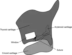 - A window is cut in the thyroid cartilage for a suture to be passed through later in the procedure.