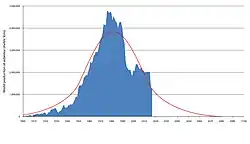 Industrial-scale mining began in the Thetford hills, Quebec, from the 1870s. Sir William Edmond Logan was the first to notice the large deposits of chrysotile in the hills in his capacity as head of Geological Survey of Canada. Samples of the minerals from there were displayed in London and elicited much interest.[41] With the opening of the Quebec Central Railway in 1876, mining entrepreneurs such as Andrew Stuart Johnson and William Henry Jeffrey established the asbestos industry in the province.[43] The 50-ton output of the mines in 1878 rose to over 10,000 tonnes in the 1890s with the adoption of machine technologies and expanded production.[41][44] For a long time, the world's largest asbestos mine was the Jeffrey Mine in the town of Asbestos, Quebec.[45]