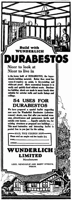 In Australia, asbestos was widely used in construction and other industries between 1946 and 1980. From the 1970s, there was increasing concern about the dangers of asbestos, and following community and union campaigning, its use was phased out, with mining having ceased in 1983.[64] The use of asbestos was phased out in 1989 and banned entirely in December 2003. The dangers of asbestos are now well known in Australia, and there is help and support for those suffering from asbestosis or mesothelioma.[65]