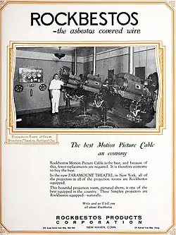 Artificial Christmas snow, known as flocking, was previously made with asbestos.[69] It was used as an effect in films including The Wizard of Oz and department store window displays and it was marketed for use in private homes under brand names that included "Pure White", "Snow Drift" and "White Magic".[70]