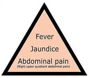 | Symptoms | Fever, jaundice, abdominal pain[2] |