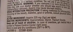 The 5-grain aspirin. The usage guidance label on a bottle of aspirin indicates that the dosage is "325 mg (5 gr)".
